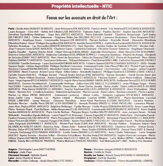 Ravi d’apparaitre dans la liste des avocats reconnus en Droit de l’Art du Barreau de Paris publiée dans le dernier numéro du Journal du Management Juridique et Réglementaire du Village de la Justice (propriété intellectuelle et nouvelles technologies)